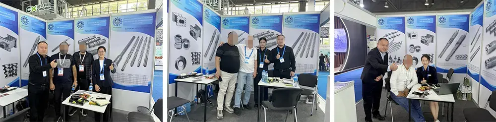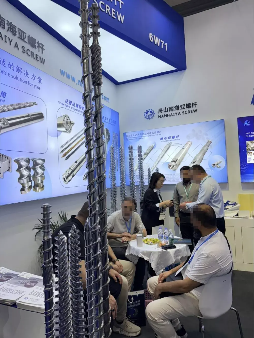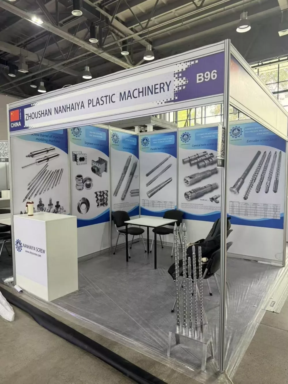Od 21. do 23. rujna 2025. Zhoushan Nanhaiya Plastic Machinery Co., Ltd. na svom je štandu izložio svoje smanjene modele vijka i bačve. Sa svojom vodećom tehnologijom otpornom na habanje i prilagođenim rješenjima, proizvodi su postali vrhunac izložbe, privlačeći brojne kupce iz zemalja srednje Azije kao što su Uzbekistan i Kazahstan.